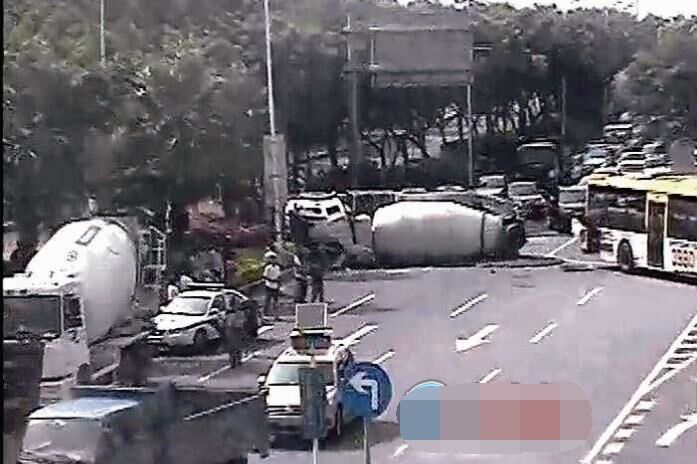而攪拌車司機(jī)被困在駕駛室內(nèi)。交警對出事路段車道進(jìn)行臨時封閉;消防救出司機(jī),送往醫(yī)院。