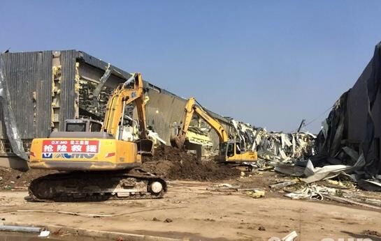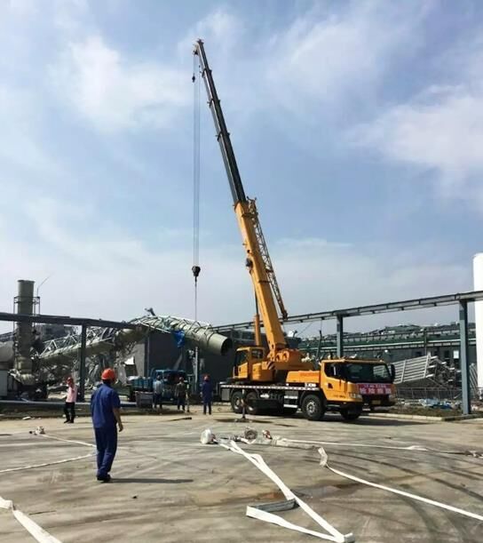 23日下午,由6名人員、4臺起重機、1臺挖掘機和兩輛服務(wù)車組成的救援小分隊趕到鹽城阜寧縣災(zāi)區(qū),緊急與當(dāng)?shù)鼐仍渚?、政府取得?lián)系,聽從統(tǒng)一指揮,全力投入現(xiàn)場搶險。