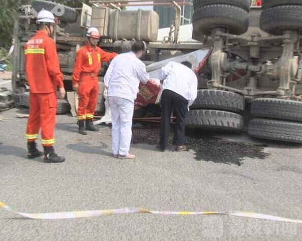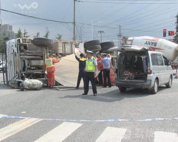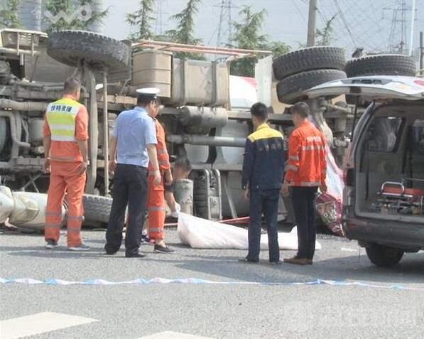 事故發(fā)生之后,南京交警十大隊民警迅速趕到現(xiàn)場,設(shè)置路障、保護現(xiàn)場,呼叫救護車過來救助傷者。荔枝新聞通訊員在現(xiàn)場看到,一輛大型水泥攪拌車側(cè)翻在紅綠燈路口中間,車頭頂著一輛踏板電瓶車,騎車的男子被攪拌車壓在底下,已經(jīng)死亡。肇事的水泥攪拌車駕駛員也投案自首。