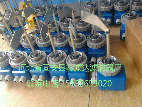 產(chǎn)品描述:阻旋料位計的工作原理阻旋料位計也有的稱之為阻旋物位計或者阻旋料位開關(guān)、阻旋物位開關(guān)等,主要是根據(jù)它具體的不同用途的不同叫法,功能上都大同小異。GGB400-系列阻旋式料位開關(guān)是采用交流微電機經(jīng)減速后,帶動檢測葉片慢速旋轉(zhuǎn)。當(dāng)被測物料的料位上升使葉片的轉(zhuǎn)動受到阻擋時,檢測機構(gòu)主軸產(chǎn)生旋轉(zhuǎn)位移。此位移首先使一個微動開關(guān)動作,發(fā)出有料的信號。隨后另一個微動開關(guān)動作,切斷微電機的電源使其停止轉(zhuǎn)動。只要倉內(nèi)的料位不變,此種狀態(tài)便將一直保持下去。
