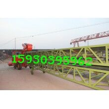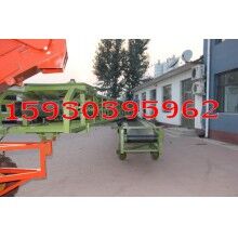 組合形式為:底盤有駕駛室和方向盤,有自動(dòng)行走功能;扒谷機(jī)安裝在底盤前部,可升降;組合輸送機(jī)安裝在底盤后部,可相對(duì)底盤左右旋轉(zhuǎn),輸送機(jī)部分又分為上下兩層輸送機(jī),上層輸送機(jī)的終端用轉(zhuǎn)盤和跑輪與下層輸送機(jī)連接,兩者可相對(duì)旋轉(zhuǎn)和移動(dòng),扒谷機(jī)部分又可以和上層輸送機(jī)90度范圍內(nèi)轉(zhuǎn)向。