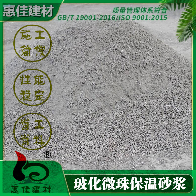 玻化微珠保溫砂漿是應(yīng)用于外墻內(nèi)外保溫的一種新型無機保溫砂漿材料, 以玻化微珠為輕質(zhì)骨料、?;⒅楸啬z粉料按一定比例攪拌均勻混合而成,具有強度高、質(zhì)輕、保溫、隔熱好、電絕緣性能好、耐磨、耐腐蝕、防輻射等顯著特點。