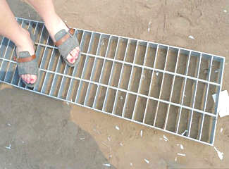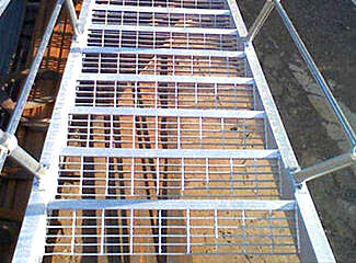 1T1踏步板:由負(fù)載扁鋼和橫桿按一定間距經(jīng)緯排列,一般鋼格板焊接固定。