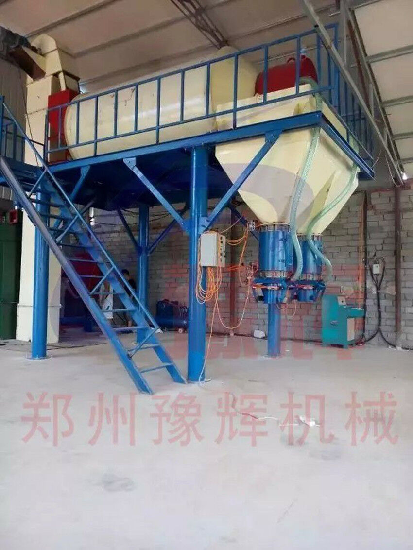 三次混合:成品倉(cāng)也稱(chēng)勻料器,防止無(wú)機(jī)保溫砂漿由于不同組分比重差異較大而造成無(wú)機(jī)保溫砂漿的容重不達(dá)標(biāo)。