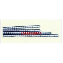 高強(qiáng)度不銹鋼穿條由19根不銹鋼絲以特殊的多層纏繞方式紡織成軟軸,外纏以1mm厚高強(qiáng)耐磨不銹鋼皮精制而成。該串條具有抗拉強(qiáng)度大、壽命長(zhǎng)的優(yōu)點(diǎn)。