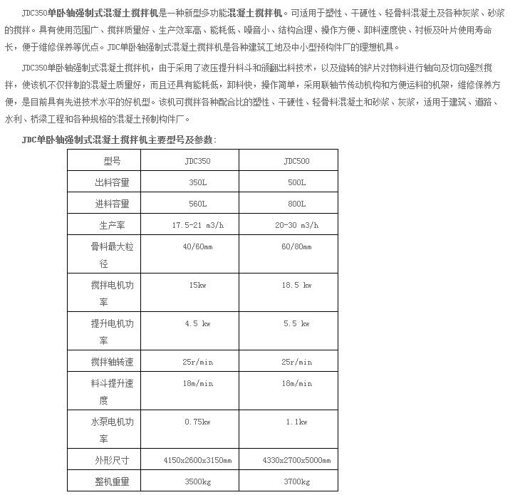 歸屬行業(yè):JDC單臥軸混凝土攪拌機