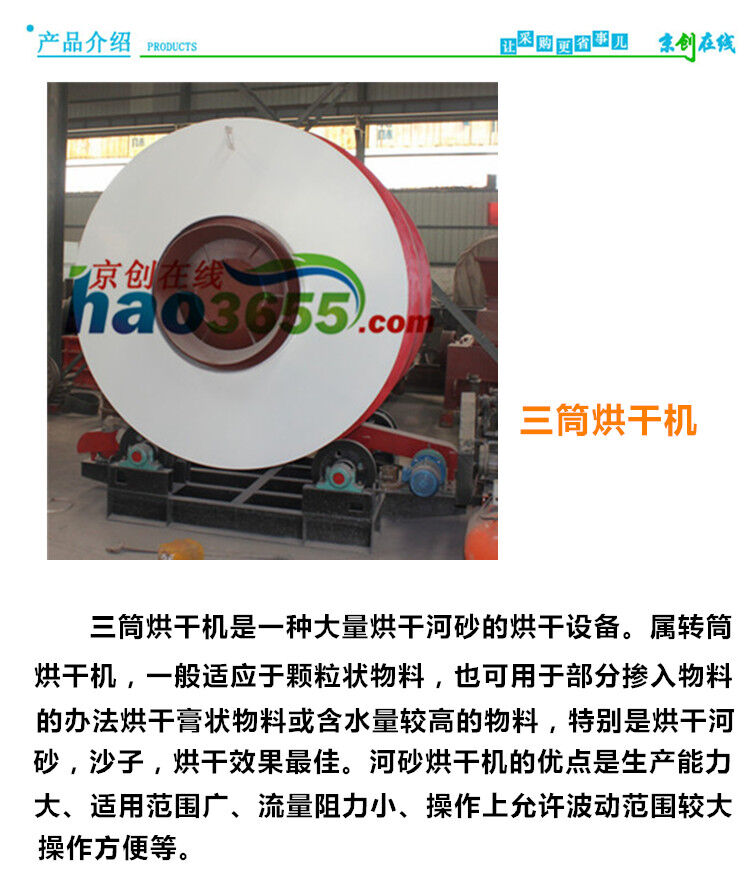 YHS6210三筒烘干機(jī)YHS6210在濕物料烘干設(shè)備系列產(chǎn)品中,回轉(zhuǎn)式三筒烘干機(jī)是在單筒回轉(zhuǎn)式烘干機(jī)基礎(chǔ)上改進(jìn)的高效節(jié)能產(chǎn)品。經(jīng)多家企業(yè)、多個行業(yè)的應(yīng)用,取得了良好的效果?;剞D(zhuǎn)式三筒烘干機(jī)改進(jìn)了單筒原單筒烘干機(jī)內(nèi)部結(jié)構(gòu),增加入機(jī)前濕料的予烘干和延長濕料在機(jī)內(nèi)烘干時間,再加上密封、保濕以及合理的配套措施,使烘干機(jī)生產(chǎn)能力與原單筒式烘干機(jī)相比,提高50-80%,單位容積蒸發(fā)強(qiáng)度可達(dá)120-180kg/m3,標(biāo)準(zhǔn)煤耗僅為6-8kg/t。其技術(shù)先進(jìn)、運(yùn)行參數(shù)合理,操作簡單可行。“科恒機(jī)械”制造的三筒烘干機(jī)筒體體內(nèi)根據(jù)用戶需求不同,內(nèi)部可以設(shè)計(jì)配備使用耐高溫材料隔溫,在進(jìn)料端為防止倒料設(shè)有門圈及螺旋抄板。具有結(jié)構(gòu)合理,制作精良,產(chǎn)量高,能耗低,運(yùn)轉(zhuǎn)方便等優(yōu)點(diǎn)。另外我公司的研發(fā)部門經(jīng)過多年的不懈努力,可將鍋爐尾氣做為三筒烘干機(jī)的供熱熱源,成功推出利用鍋爐廢氣烘干機(jī)。是供熱無投資,用熱無成本。真節(jié)能干燥,真正節(jié)能環(huán)保??捎糜?/span>廣泛應(yīng)用于各個行業(yè)的礦渣、粘土、煤、鐵粉、礦粉及其它混合材,建筑業(yè)的干混砂漿,黃砂等以及化工、鑄造等行業(yè)原材料烘干。