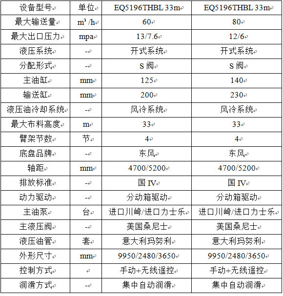 攪拌一體臂架泵車基本配置表