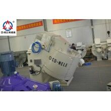 CQM系列高效強(qiáng)力混合機(jī)在強(qiáng)力混合機(jī)的料盤中,偏心安裝攪拌星與高速轉(zhuǎn)子。料盤以低速順時針方向旋轉(zhuǎn),連續(xù)不斷地將物料送入中速逆時針轉(zhuǎn)動的攪拌星的運(yùn)轉(zhuǎn)軌跡內(nèi),借助料盤旋轉(zhuǎn)及刮料板的作用,將物料翻轉(zhuǎn)送入高速逆時針旋轉(zhuǎn)的高速轉(zhuǎn)子運(yùn)行的軌跡內(nèi)進(jìn)行混料。在連續(xù)的、逆流相對運(yùn)動的高強(qiáng)度混練過程中,物料能夠在很短的時間內(nèi)混合均勻一致,