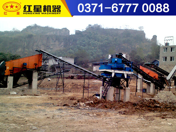 首先,大塊的煤矸石經(jīng)振動給料機均勻的送入到顎式破碎機內(nèi)進行粗碎加工,而后再經(jīng)過反擊式破碎機進行細碎加工,破碎后的煤矸石經(jīng)膠帶輸送機送到圓振動篩進行篩選,滿足制砂機進料要求的煤矸石送到制砂機中進行制砂處理,不滿足要求的重新返回反擊式破碎機再次破碎,制砂出來后的煤矸石經(jīng)圓振動再次篩選,滿足要求的矸石砂進行清洗,而后送入到成品堆,不滿足要求的再次進行加工,直到滿足成品要求。