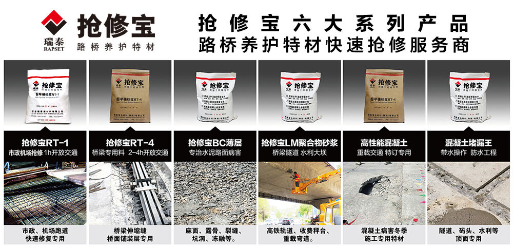 常規(guī)的混凝土快速修補(bǔ)劑,是由無機(jī)與有機(jī)高分子材料組成的一種快速修補(bǔ)材料,具有快硬、早強(qiáng)、抗?jié)B、抗裂、耐磨、耐久等特點,較之普通混凝土,混凝土快速修補(bǔ)劑修補(bǔ)的路面粘結(jié)更牢固,修補(bǔ)過后的水泥路面沒有出現(xiàn)破損、裂縫、脫皮等剝離現(xiàn)象,抗壓強(qiáng)度和抗折強(qiáng)度更高,是混凝土路面病害修復(fù)材料的上等材料。與常規(guī)混凝土快速修補(bǔ)劑不同的是,西安瑞泰公司生產(chǎn)的水泥混凝土路面快速修補(bǔ)料搶修寶自主研發(fā)了一種獨特的修補(bǔ)產(chǎn)品和技術(shù),使得混凝土快速修補(bǔ)具有高柔性、高抗拉性,施工后2-4小時就可通車。因而短時間受到大量認(rèn)可,在全國各地道路搶修實施中廣泛發(fā)揮重要作用。廣泛應(yīng)用于高速公路、機(jī)場跑道、國道、省道、縣鄉(xiāng)公路、橋隧、加油站、工廠、小區(qū)、停車場、廠房、水壩、水電站等水泥路面病害問題的快速治理。