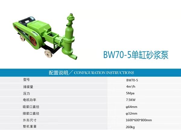 BW70-5型單缸砂漿泵技術(shù)參數(shù)