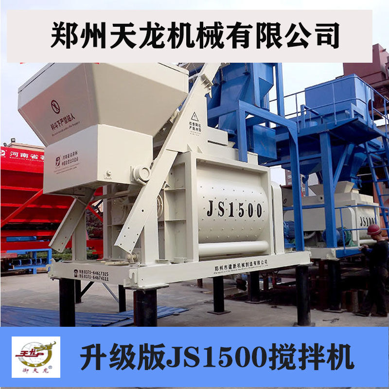 JS1500型混凝土攪拌機(jī)每次出料為1500公升,是鄭州天龍成熟的產(chǎn)品之一,在國內(nèi)首屈一指,該型號攪拌機(jī)攪拌能力強(qiáng),工作效率高,既可獨(dú)立作業(yè),也可用作HZS50HZS60攪拌站的主機(jī),與配料機(jī)組成簡易的5060型混凝土攪拌站。