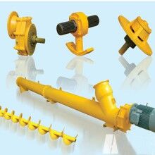 旋轉(zhuǎn)的螺旋葉片將物料推移而進行螺旋輸送機輸送,使物料不與螺旋輸送機葉片一起旋轉(zhuǎn)的力是物料自身重量和螺旋輸送機機殼對物料的摩擦阻力。螺旋輸送機旋轉(zhuǎn)軸上焊的螺旋葉片,葉片的面型根據(jù)輸送物料的不同有實體面型、帶式面型、葉片面型等型式。螺旋輸送機的螺旋軸在物料運動方向的終端有止推軸承以隨物料給螺旋的軸向反力,在機長較長時,應(yīng)加中間吊掛軸承。