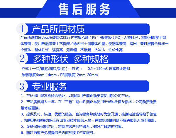 鋼襯塑反應(yīng)罐產(chǎn)品具有無焊接縫、不滲漏、無毒性、抗老化、抗沖擊、耐腐蝕、壽命長、符合衛(wèi)生標(biāo)準(zhǔn)等優(yōu)點(diǎn)。它彌補(bǔ)了全塑滾塑儲罐剛性強(qiáng)度差,不耐壓,耐溫差的缺點(diǎn)。產(chǎn)品內(nèi)襯面平整、光滑、堅(jiān)固,與傳統(tǒng)的鋼襯塑料板儲槽、鋼襯橡膠儲罐、鋼襯玻璃鋼貯槽相比,具有更良好的耐腐蝕、不滲漏、不剝離、耐磨損、可耐一定壓力、可耐較高溫度、壽命更長等優(yōu)點(diǎn),其價格低于同規(guī)格的傳統(tǒng)儲罐,是儲存腐蝕液體的理想容器。因而是一種極為優(yōu)異的耐腐蝕儲罐。