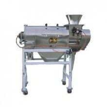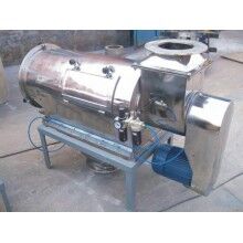 本設備篩網為圓筒狀,置于機體內,物料通過螺旋輸送系統(tǒng)后,和氣流混合,霧化進入網桶內;通過網桶內風輪葉片使物料同時受離心力和旋風推進力,從而迫使物料噴射過網,由細料排出口排出,不能過網的物料沿網桶壁從粗料排出口排出。
