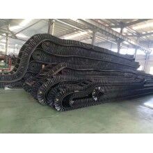 遼寧擋邊輸送帶廠家,波狀擋邊輸送帶由基帶、擋邊、橫隔板3部分組成。擋邊起防止物料測滑撒落的作用。為便于繞過滾筒,檔邊設(shè)計成波紋狀;波狀擋邊輸送帶橫隔板的作用是承托物料,為了實現(xiàn)大傾角輸送,采用TTC型。波狀擋邊輸送帶檔邊和橫隔板是用二次硫化的方法與基帶連接的,具有很高的連接強度 .一、產(chǎn)品特點(普通型大傾角波狀擋邊輸送帶)