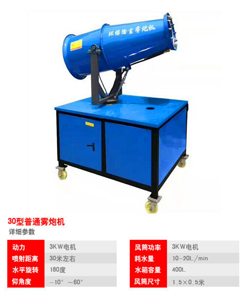 5、 噴霧時可按照需求進(jìn)行水平噴射角度和俯仰角度調(diào)整,水平扭轉(zhuǎn)可在電控箱上或遙控器上點(diǎn)動“向左”或“向右”按鈕進(jìn)行調(diào)整,俯仰角可按照必要在電控箱上或遙控器上點(diǎn)動“向上”或“向下”按鈕進(jìn)行調(diào)整;液體通過液泵產(chǎn)生霧狀由噴嘴噴至噴筒口,再經(jīng)風(fēng)機(jī)風(fēng)力切割破裂后噴向物體。