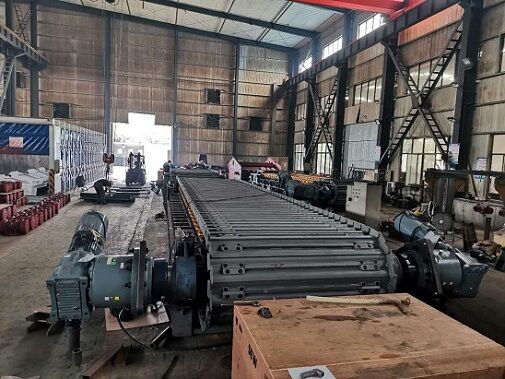 (3)輥體通過卡鍵定位在通軸上,并鎖緊,輥體長度與負荷槽板上固定運轉(zhuǎn)鏈條的加厚槽板等長并對應(yīng),支承回程槽板負荷。