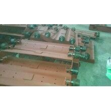 購(gòu)買已確定要改動(dòng)的部件,利用大修時(shí)間,將頭輪和尾輪拆除,對(duì)軸進(jìn)行加工,重新安裝;槽板拆除后,對(duì)與輸送鏈條配合的定位孔進(jìn)行加工;行走輪固定座需焊接至槽板上的,在線下加工完成后焊至槽板上;支重系統(tǒng)等可在鏈輪加工期間完成,整個(gè)改造過程較為緊湊。