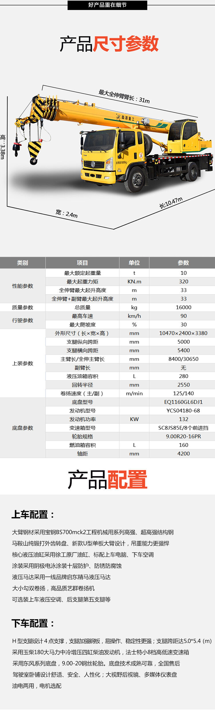 歸屬行業(yè):工地用吊車起重機(jī) 小型液壓汽車吊 高效吊重能力強(qiáng) 森源重工