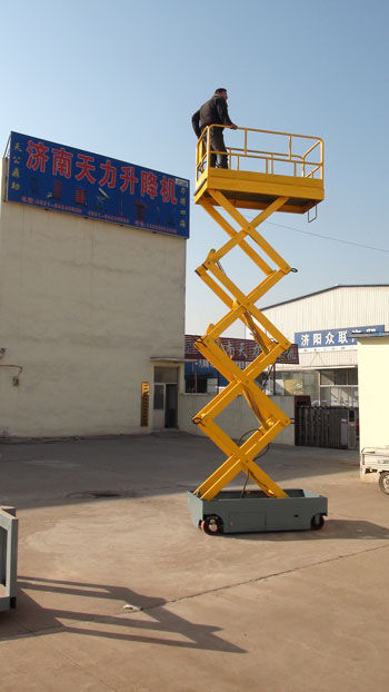 自行式液壓升降平臺(tái)自身具有行走及升降功能,行走可調(diào)速并有剎車裝置。用電瓶帶動(dòng)直流電機(jī)進(jìn)行行走和升降,也可選用交流電機(jī)或柴油機(jī)進(jìn)行行走和升降,還可選用無線電子遙控器進(jìn)行升降,不需要人工牽引,不需外接電源,移動(dòng)靈活方便,使高空作業(yè)更方便快捷,是現(xiàn)代企業(yè)高效安全生產(chǎn)理想高空作業(yè)設(shè)備。本產(chǎn)品也可根據(jù)用戶要求定制不同高度、不同尺寸的升降平臺(tái)!