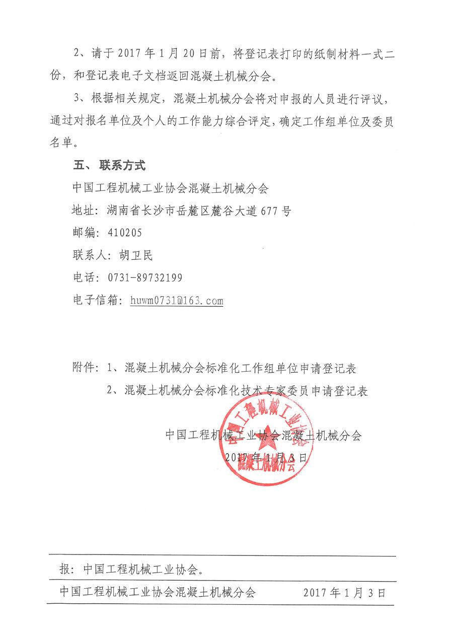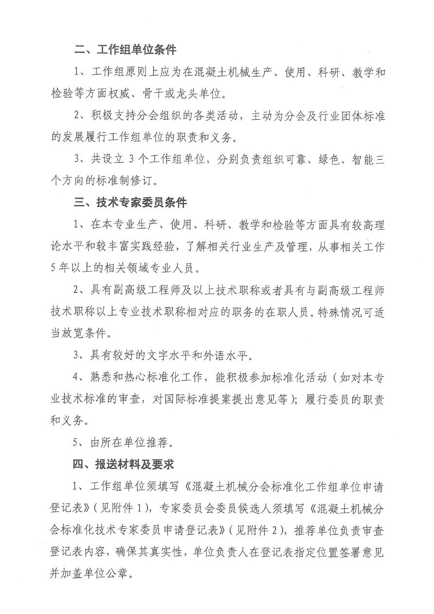 關于征集中國工程機械工業(yè)協(xié)會混凝土機械分會標準化技術專家委員及三個工作組的通知
