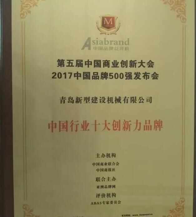 2017年5月31日,以“新品牌、新供給、新未來”為主題的第五屆中國商業(yè)創(chuàng)新大會(huì)暨2017中國品牌500強(qiáng)發(fā)布會(huì)在北京國家會(huì)議中心隆重舉行。建筑機(jī)械行業(yè)知名企業(yè)中青林集團(tuán)旗下青島新型建設(shè)機(jī)械有限公司受邀參會(huì),一舉榮獲“中國行業(yè)十大創(chuàng)新力品牌”與“中國行業(yè)十大影響力品牌”。