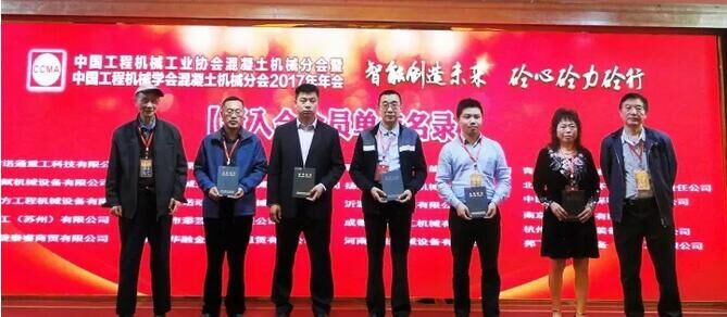 中國(guó)工程機(jī)械工業(yè)協(xié)會(huì)混凝土機(jī)械分盛春芳顧問(wèn)、魏覺(jué)顧問(wèn)為新會(huì)員頒發(fā)證書(shū)