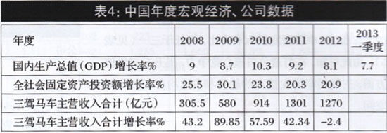 在連續(xù)多年保持高速增長之后,三駕馬車內(nèi)部約宅因素增多、外部環(huán)境嚴峻等狀況,均在年報中得到反映.其多項財務(wù)指標出現(xiàn)回落趨勢。企業(yè)發(fā)展到于—個臨界點,調(diào)整發(fā)展戰(zhàn)略的時間窗口已經(jīng)開啟。