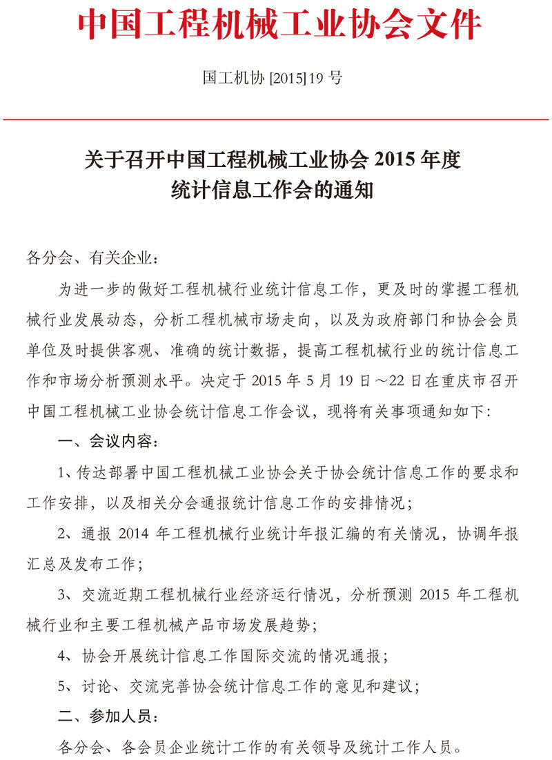 關于召開中國工程機械工業(yè)協會2015年度統(tǒng)計信息工作會的通知
