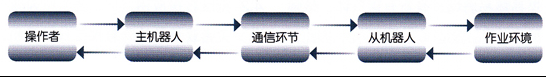 工程機(jī)器人研究的現(xiàn)狀表明,由于受到機(jī)構(gòu)、控制、傳感器以及人工智能水平的限制,研究出能在未知環(huán)境中全自主方式工作的機(jī)器人是目前難以實(shí)現(xiàn)的目標(biāo)。因此,目前在核工業(yè)、搶險(xiǎn)救災(zāi)等高危、惡劣的環(huán)境中被廣泛應(yīng)用的是遙操作機(jī)器人。遙操作機(jī)器人主要分為視覺(jué)臨場(chǎng)感遙操作機(jī)器人、力覺(jué)臨場(chǎng)感遙操作機(jī)器人、觸覺(jué)臨場(chǎng)感遙操作機(jī)器人及運(yùn)動(dòng)覺(jué)臨場(chǎng)感遙操作機(jī)器人等?;谂R場(chǎng)感的遙操作機(jī)器人系統(tǒng)原理如圖3所示,它由操作者、主機(jī)器人(手控器)、通訊環(huán)節(jié)、從機(jī)器人和作業(yè)環(huán)境5部分構(gòu)成。在臨場(chǎng)感系統(tǒng)工作過(guò)程中,由操作者向主機(jī)器人發(fā)出操作命令(如位置指令)操作主機(jī)器人運(yùn)動(dòng),主機(jī)器人的運(yùn)動(dòng)信息通過(guò)通訊環(huán)節(jié)傳給遠(yuǎn)方的從機(jī)器人,從而控制從機(jī)器人的運(yùn)動(dòng);當(dāng)從機(jī)器人同環(huán)境交互時(shí),從機(jī)器人的運(yùn)動(dòng)信息(如視覺(jué)、力覺(jué)、觸覺(jué)等信息)又通過(guò)通訊環(huán)節(jié)反饋給本地主機(jī)器人,使操作者對(duì)于現(xiàn)場(chǎng)作業(yè)情況有了有效的感知,從而能夠及時(shí)做出準(zhǔn)確判斷,發(fā)出相應(yīng)的操作命令,控制遠(yuǎn)方從機(jī)器人準(zhǔn)確、高效地完成作業(yè)任務(wù)。目前,基于視覺(jué)臨場(chǎng)感的工程機(jī)器人遙操作控制主要是用攝像機(jī)獲取現(xiàn)場(chǎng)的視頻圖像并回傳到主控端,操縱者通過(guò)監(jiān)視器來(lái)完成對(duì)工程機(jī)器人的操作任務(wù)。